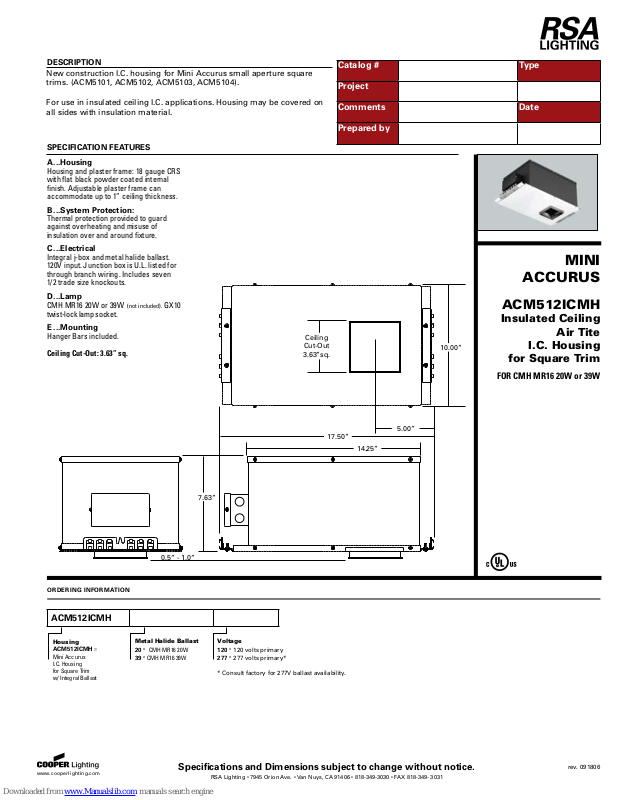 RSA Lighting • 7945 Orion Ave. • Van Nuys, CA 91406 • 818-349-3030 • FAX 818-349- 3031