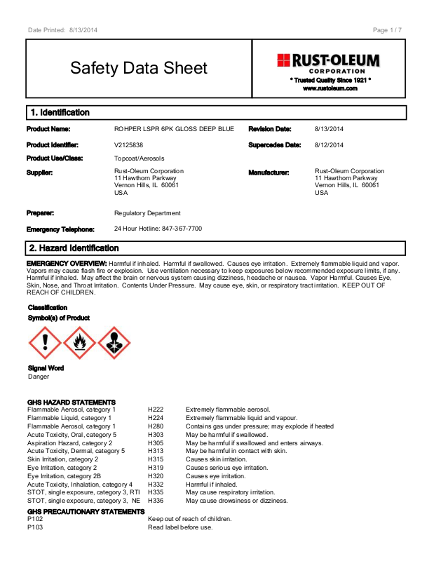 This SDS has been prepared in compliance with Controlled Product Regulations except for the use of the 16 headings.