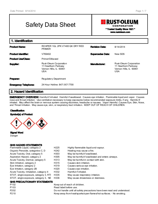 Rust-Oleum Corporation believes, to the best of its knowledge, information and belief, the information contained herein to be