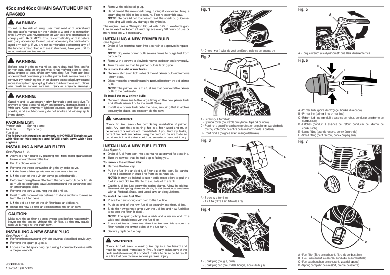 HOMELITE con motores de 45 ó 46 cc y a las motosierras RYOBI