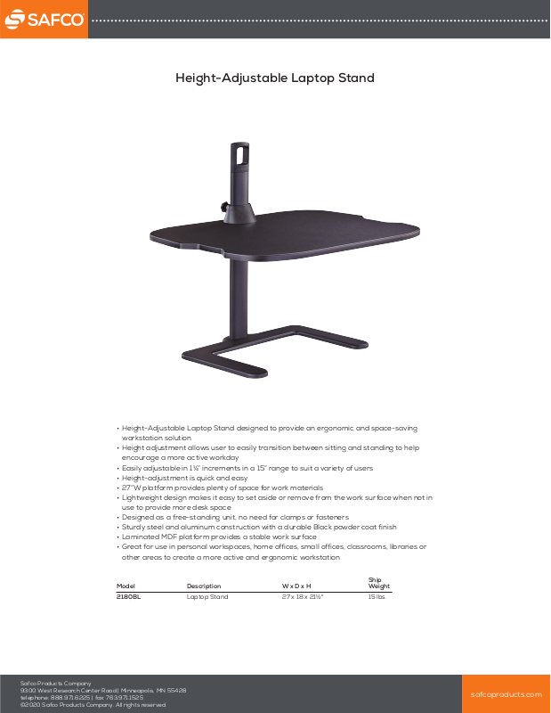 2180BL Laptop Stand 27 x 18 x 21⁄" 15 lbs. $173.00