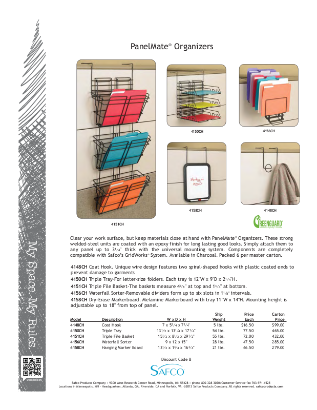 Clear your work surface, but keep materials close at hand with PanelMate®Organizers. These strong