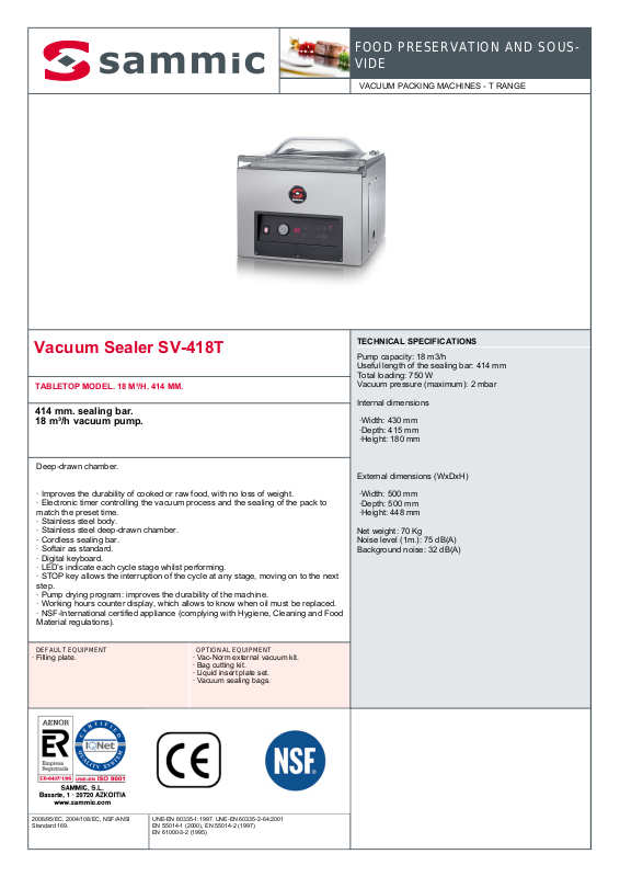 · NSF-International certified appliance (complying with Hygiene, Cleaning and Food