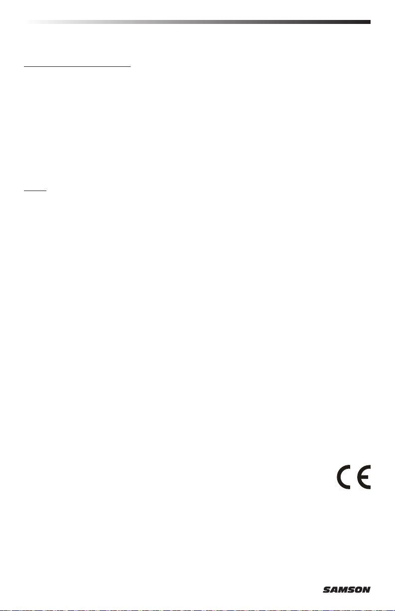 Per domande relative ai canali disponibili nella propria area, contattare il distributore Samson