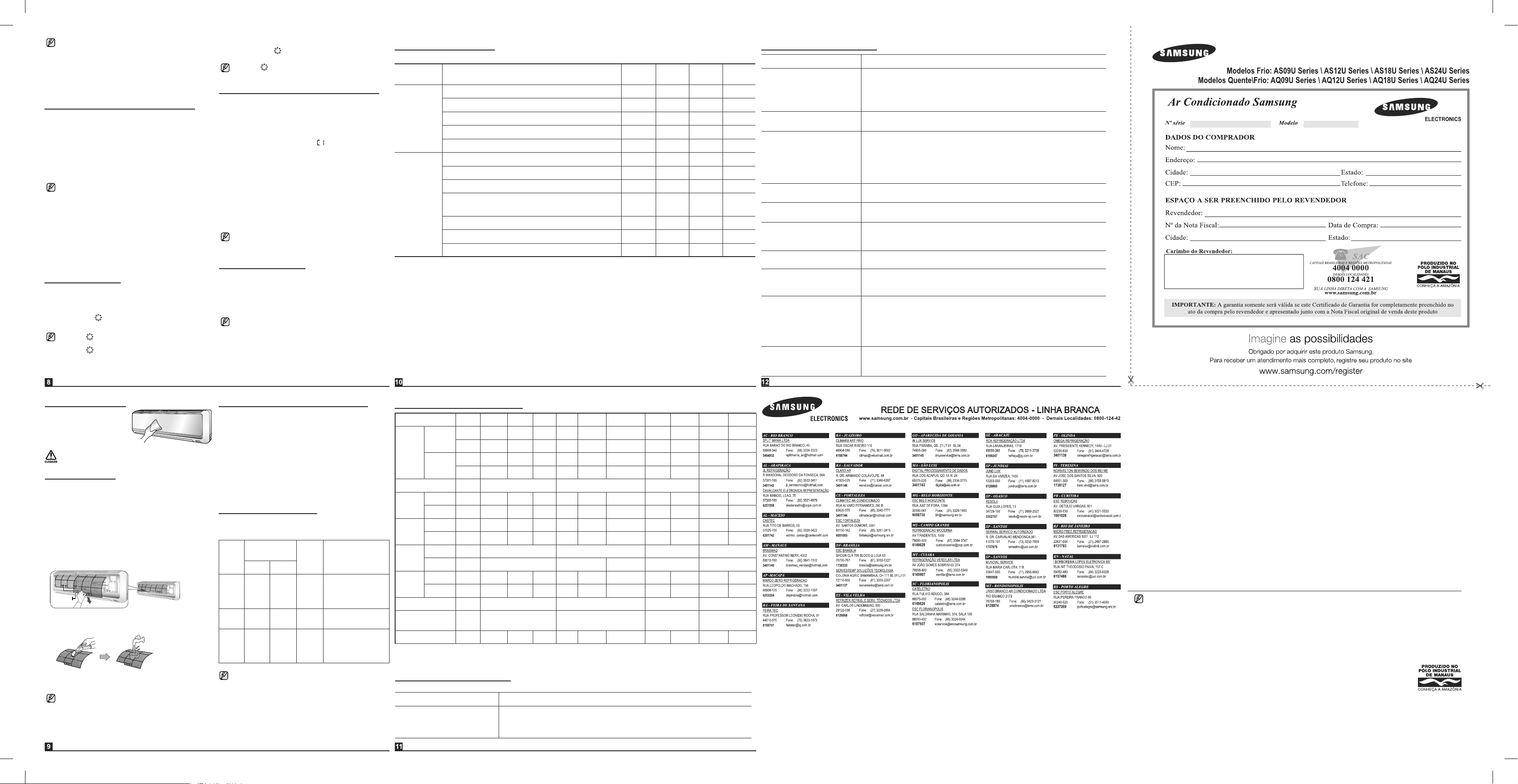Consulte à seguinte tabela se o ar condicionado se operar anormalmente. Isto pode economizar tempo e despesas desnecessárias.