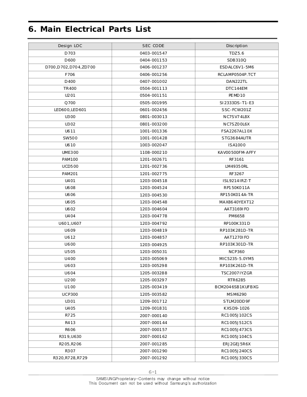 Please consuit the GSPN website(Samsung Portal) for the most r ecent version of the product's part list.