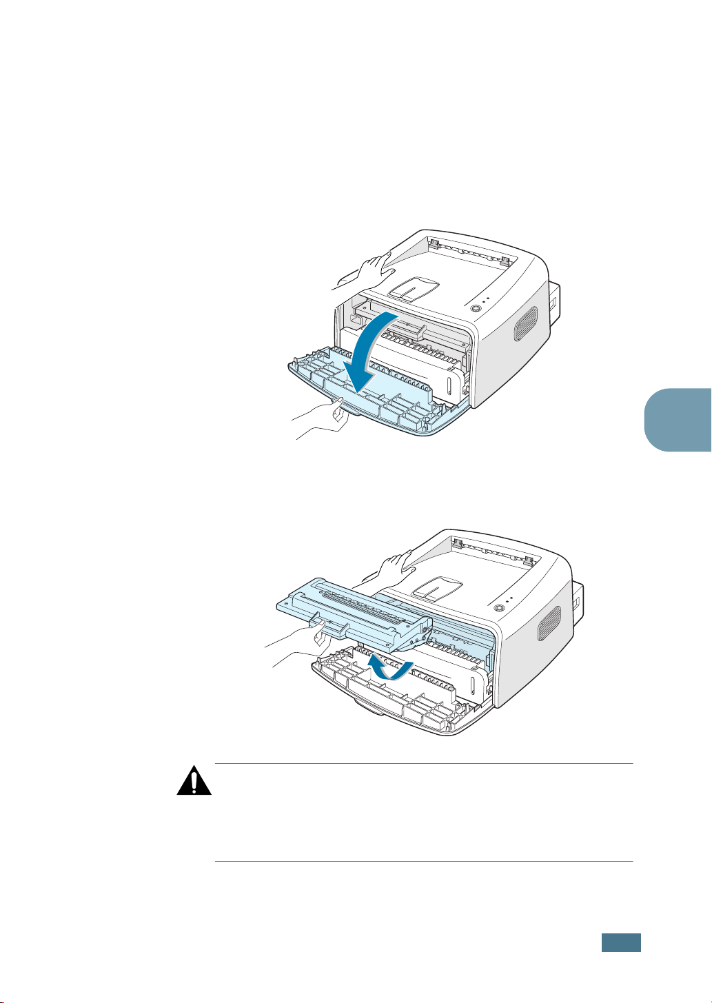 Never operate or service the printer with the protective cover removed from Laser/