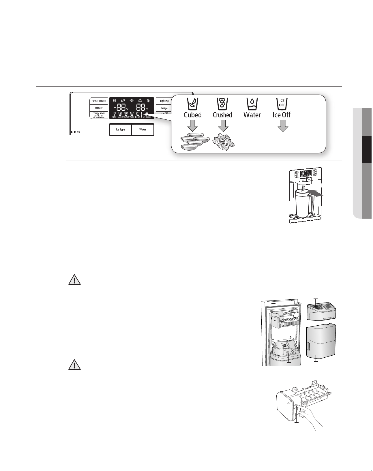 l’appareil à glaçons est réglé sur Cubed (glaçons) ou Crushed (glace pilée).