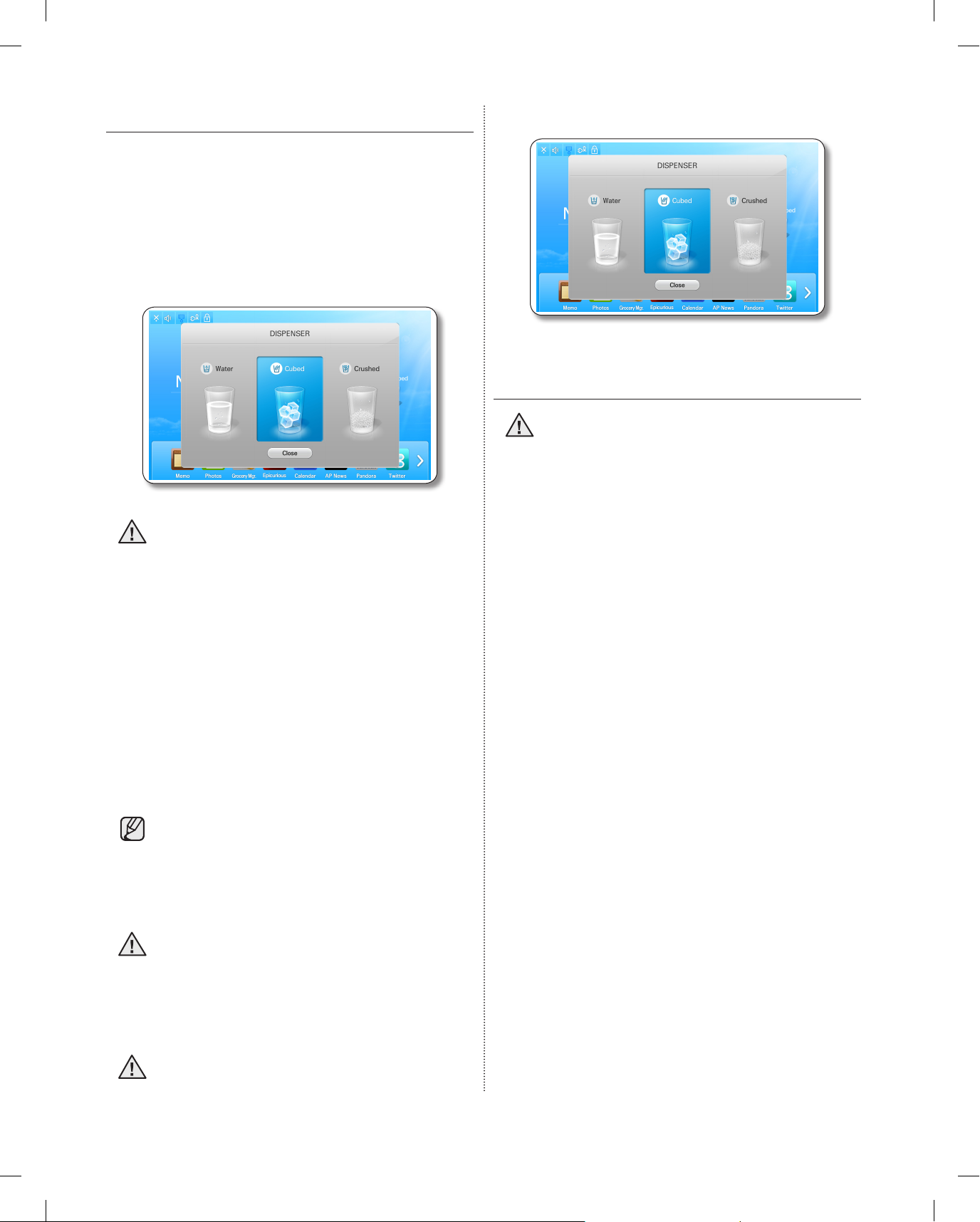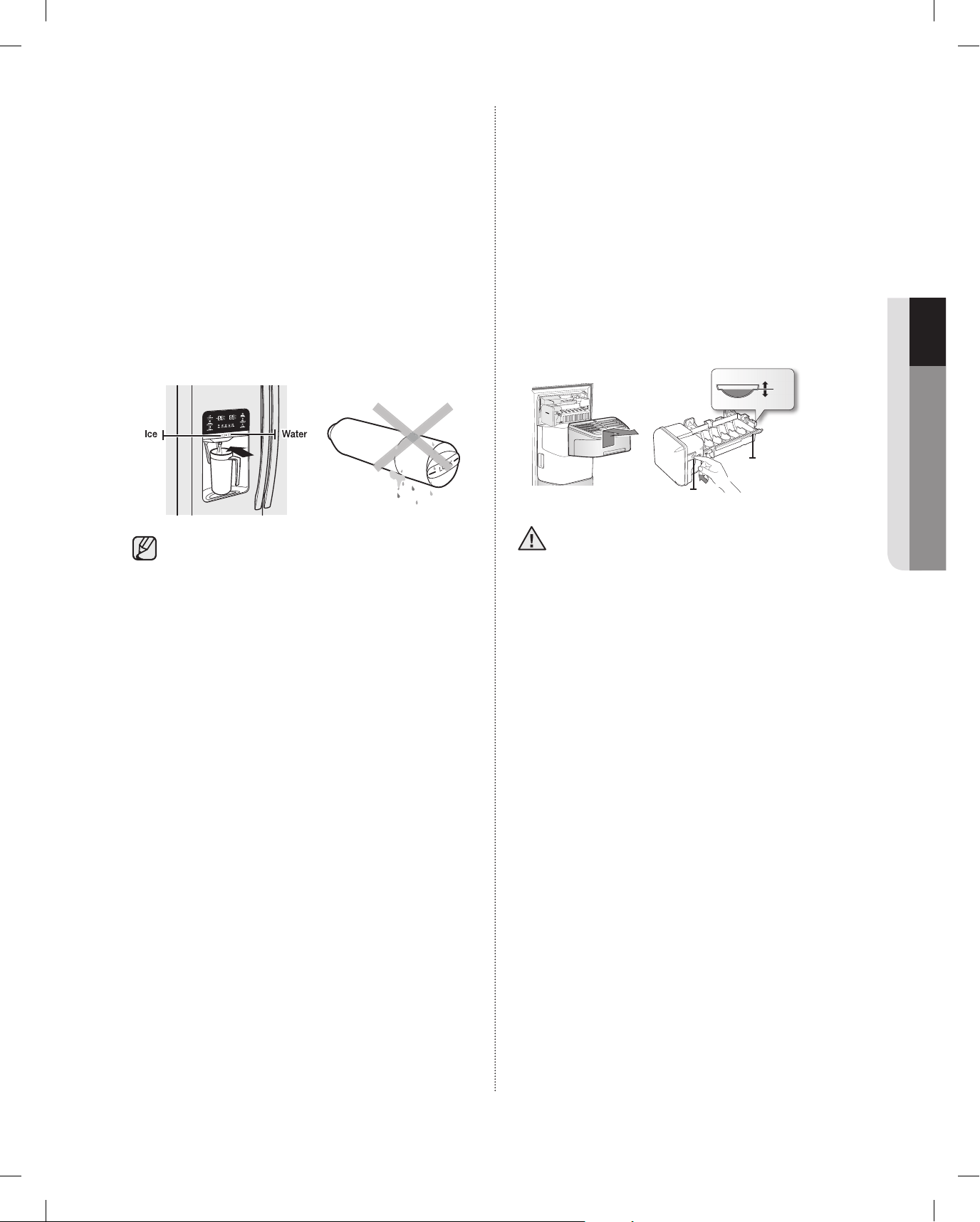 dispensador de agua, en el recipiente de hielo o en la cubeta de la