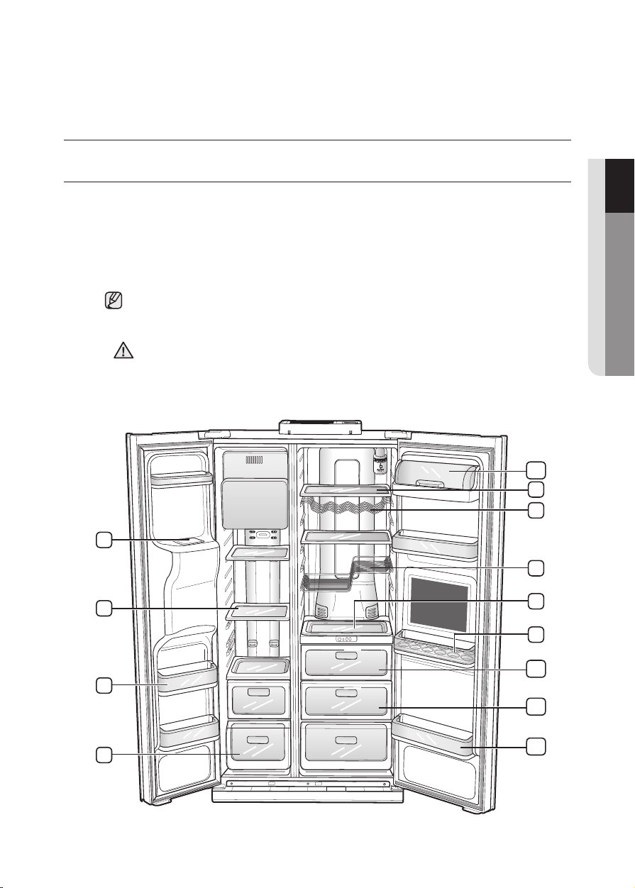 • Ponieważ niniejsza instrukcja obsługi dotyczy różnych modeli lodówek, niektóre dane
