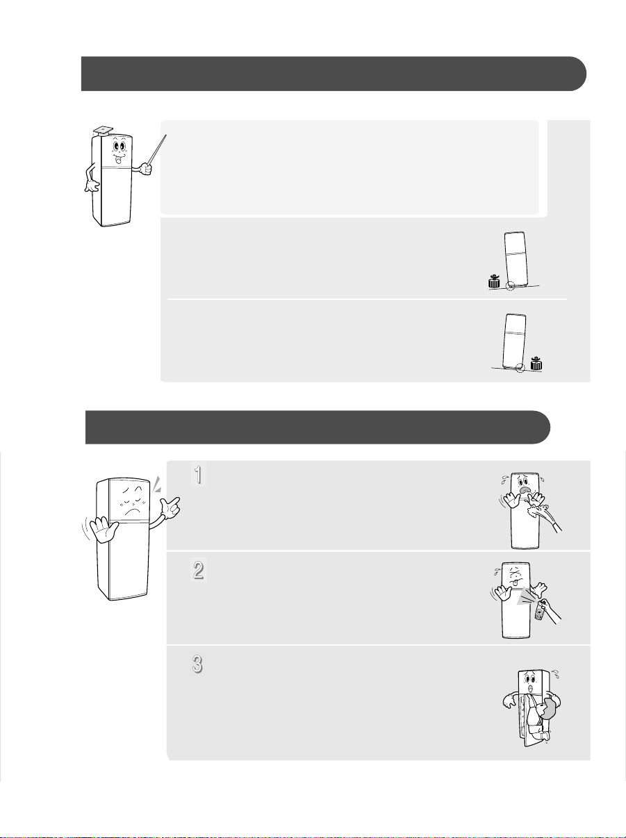 2. When disposing of refrigerator, first remove the doors, door seals and/or handles to ensure small children or animals cannot become trappend inside.