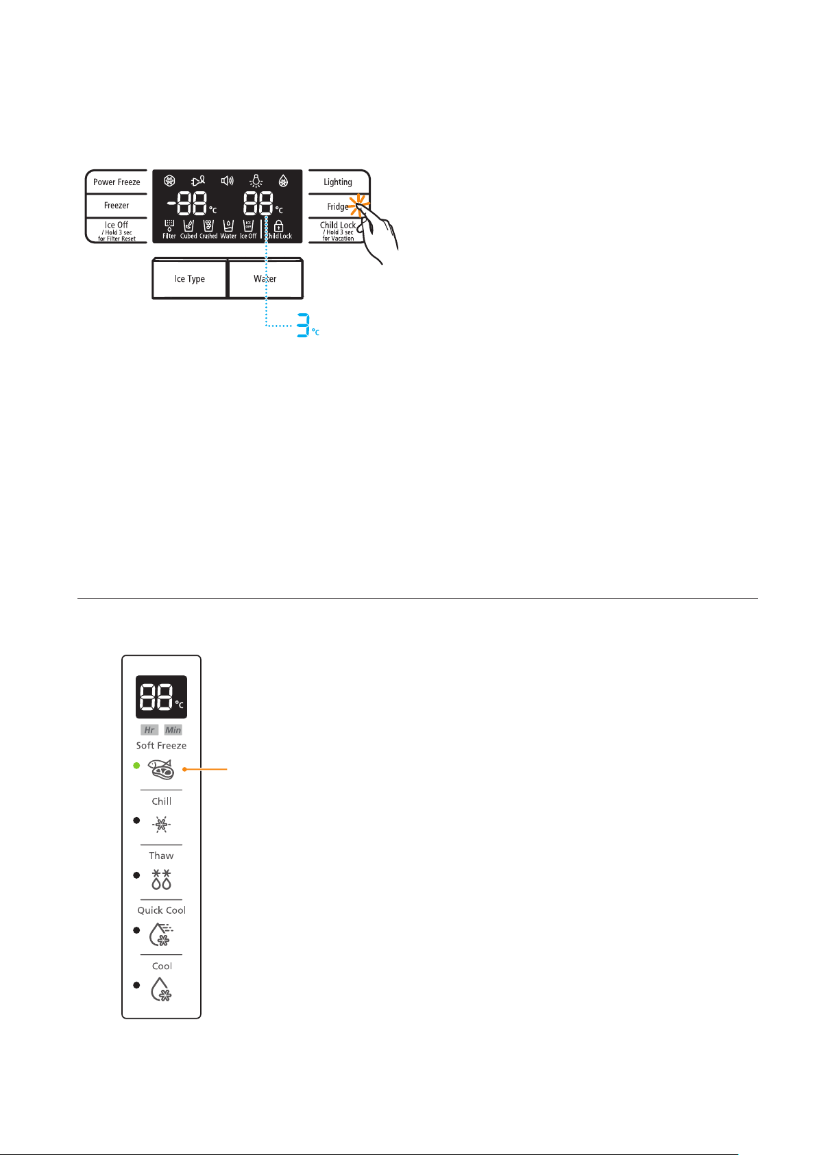 • When “Chill” is selected, the temperature of the CoolSelect Zone™ Drawer is kept at -1°C,