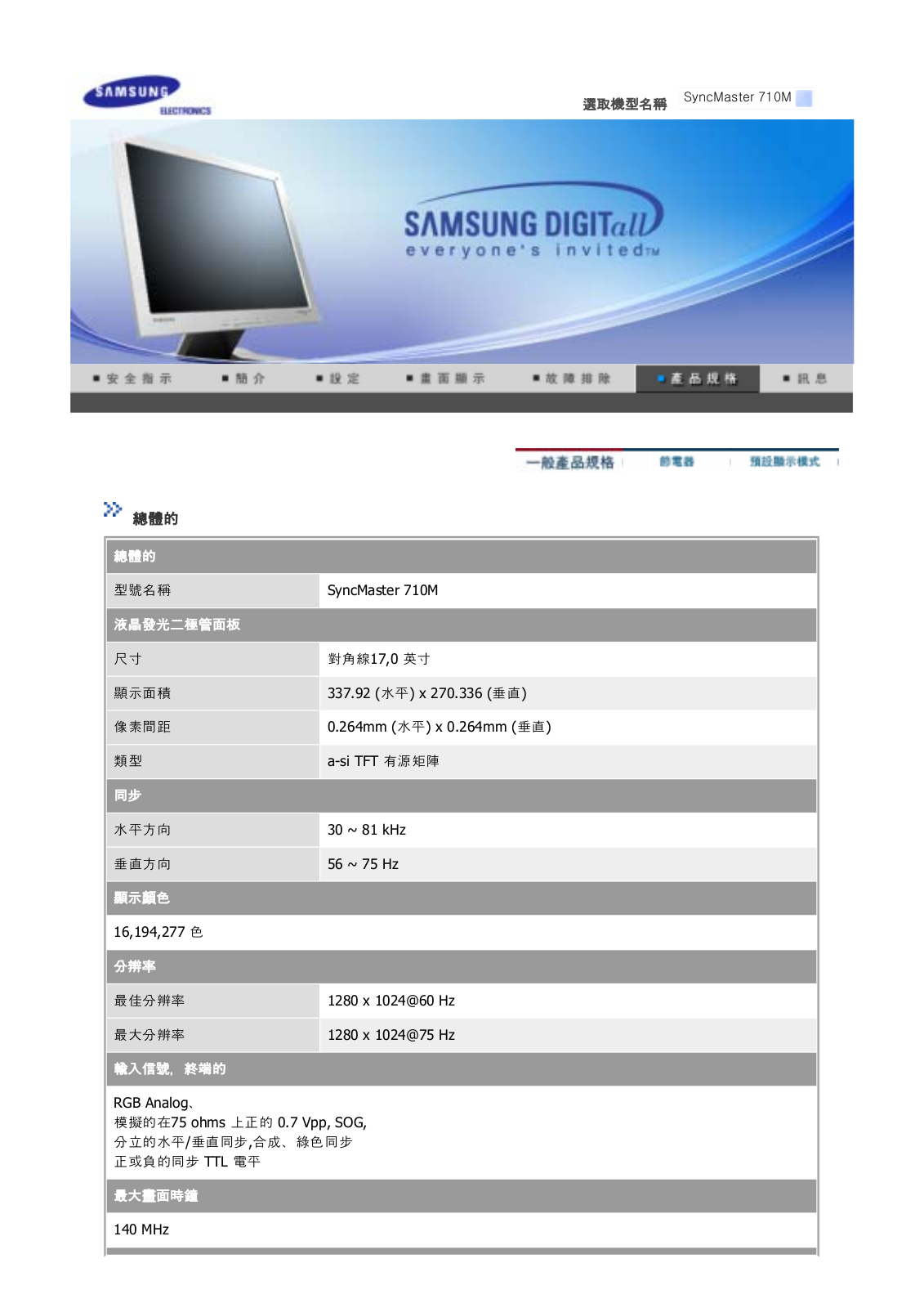 Samsung SYNCMASTER 910M, SyncMaster 712V, SYNCMASTER 910V, SYNCMASTER 510M, SYNCMASTER 710M, SYNCMASTER 710V User Manual [zh]