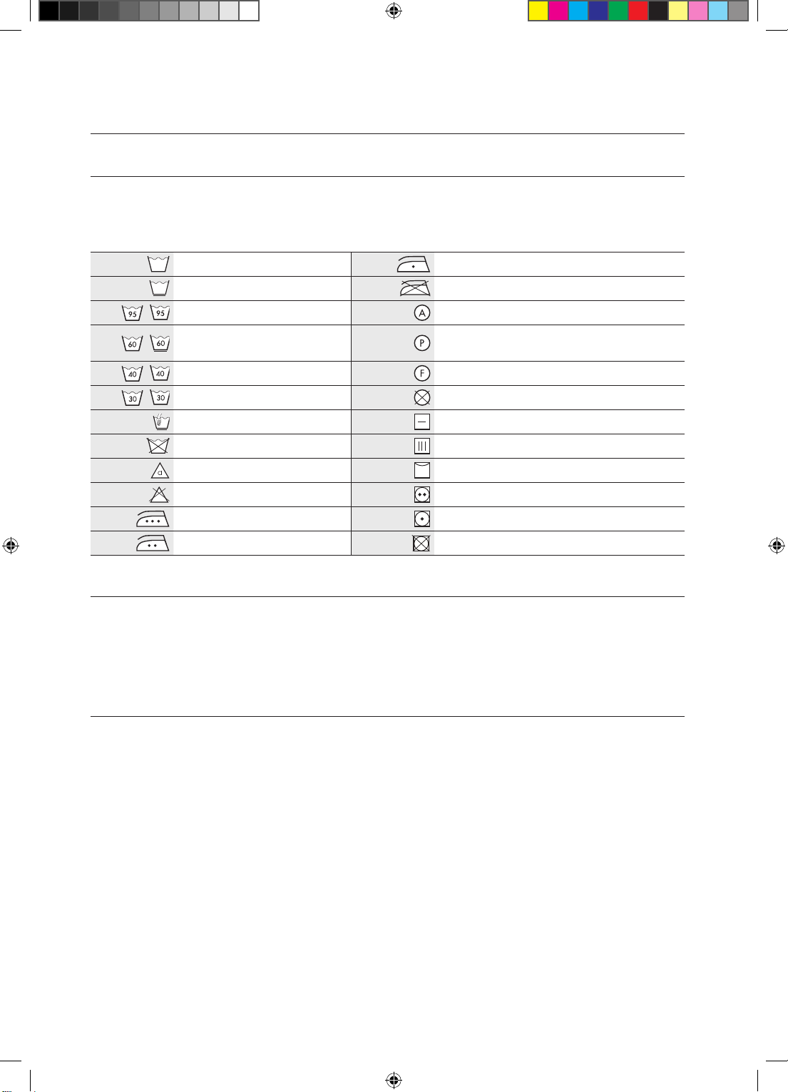 使用这些符号可使国产和进口衣物制造商保持一致。请遵照衣物标签说明,以最大限度地延长衣物使用