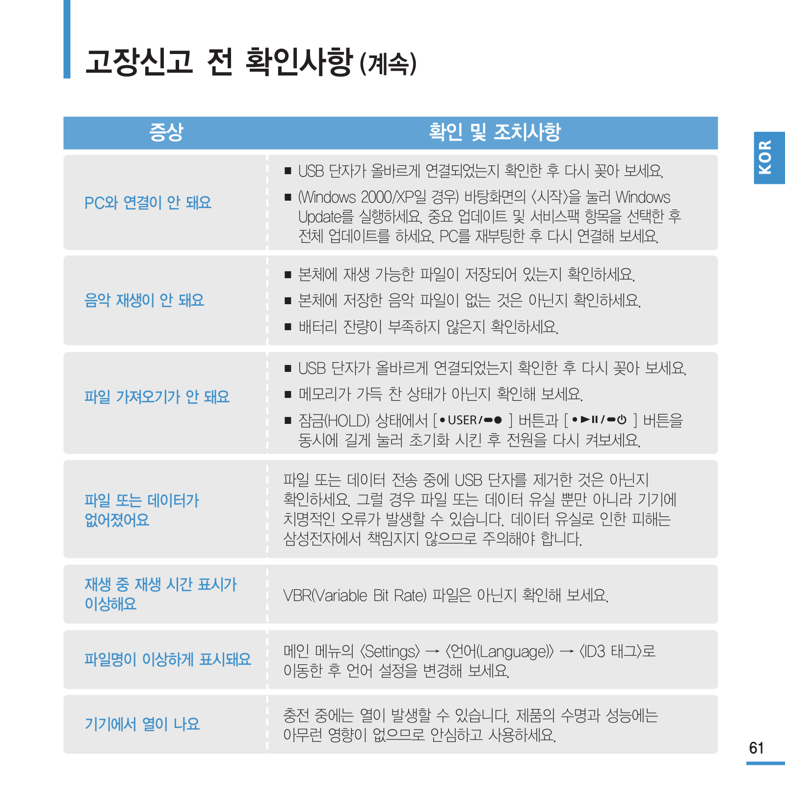 Samsung YP-U3JQW/XAA, YP-U3JQL/XAA, YP-U3JQG/XAA, YP-U3JQB/XAA User Manual