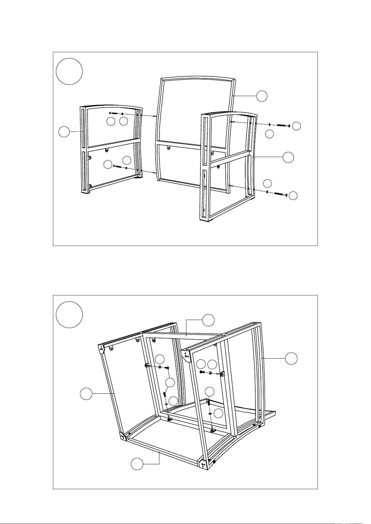 9 Locate Bench seat base (S) to the Bench backrest (Q) and Left arm (A), Right arm (B).