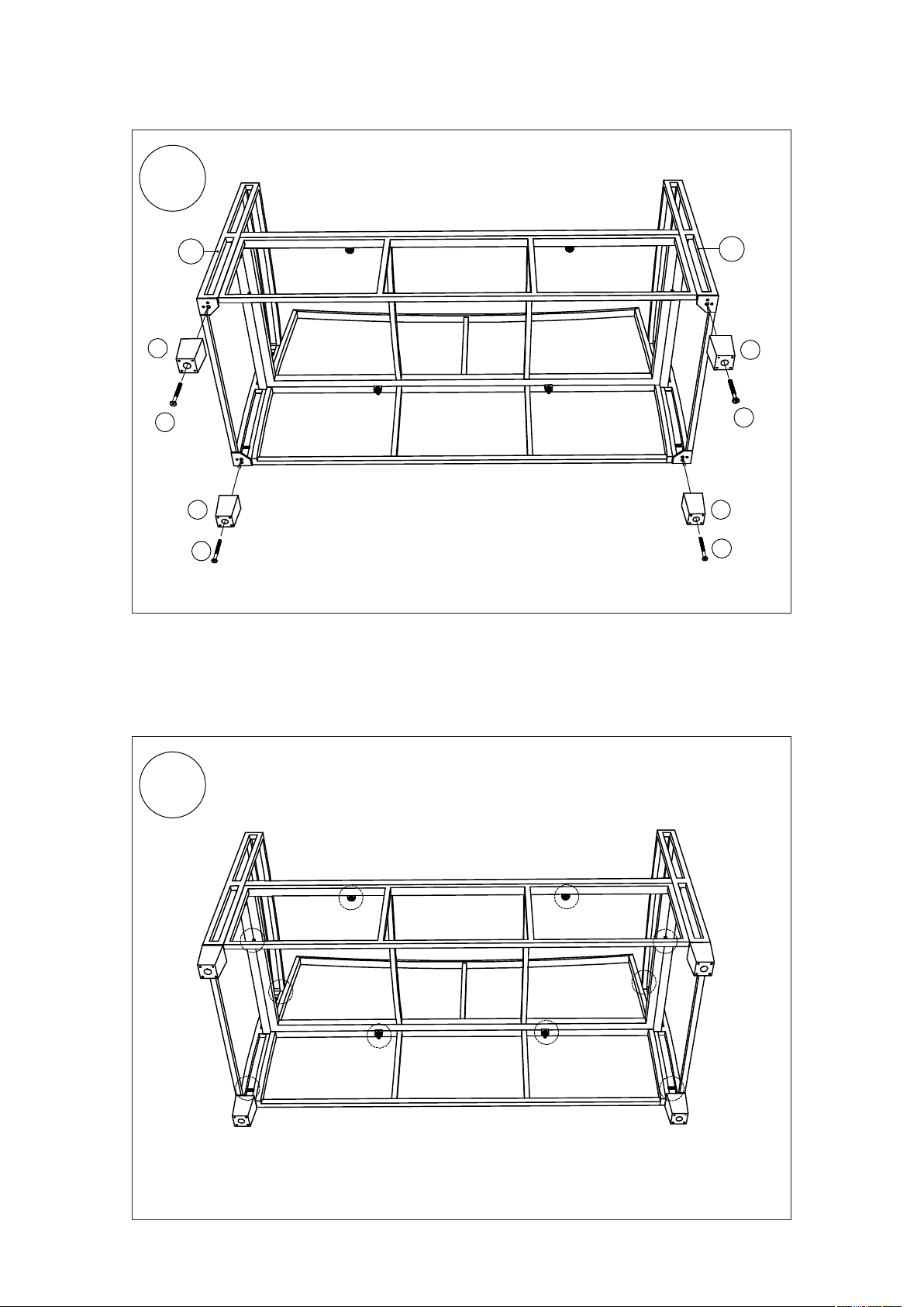 Use Allen Key (6) to fasten Bolts (2) with Washers (3). Each table foot should have 4 bolts fastened.