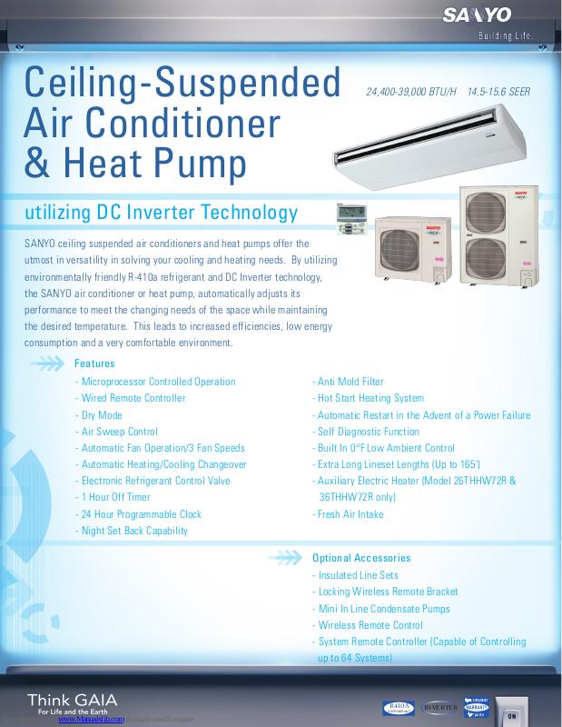 SANYO ceiling suspended air conditioners and heat pumps offer the