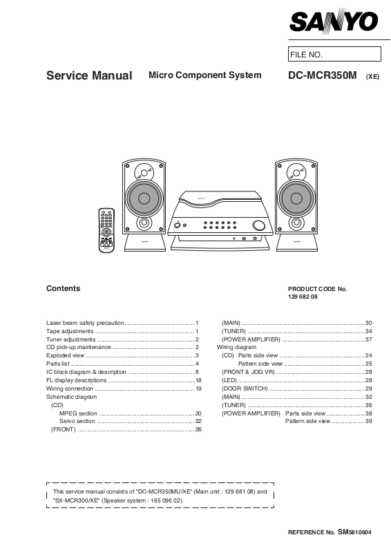 This service manual consists of "DC-MCR350MU/XE" (Main unit : 129 681 08) and