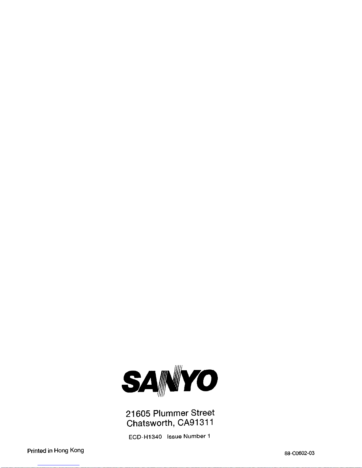 warranty The names and addresses of Authorized Sanyo Service Centers may be obtained by calling