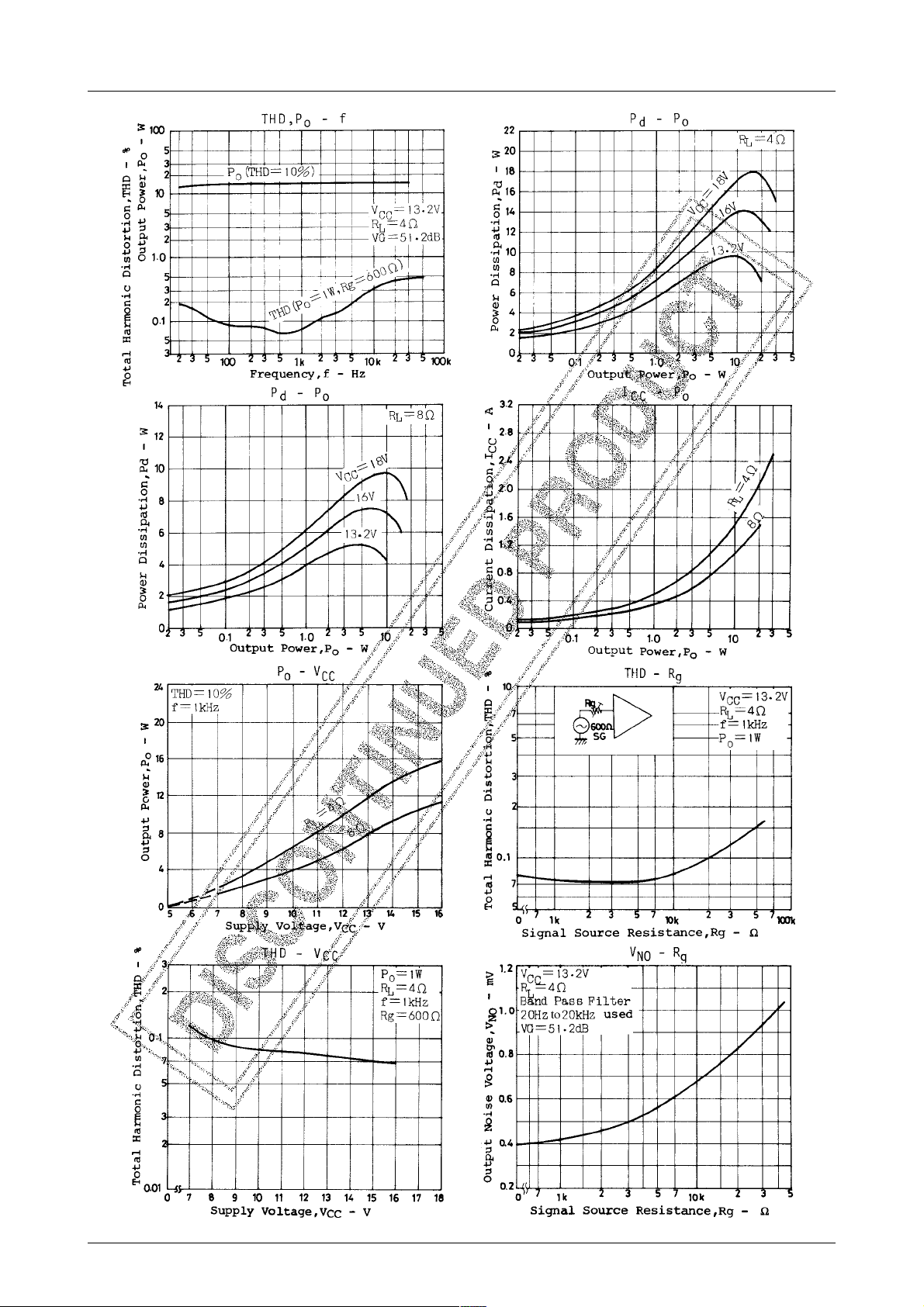 To prevent parasitic oscillation, it is recommended to connect 0.033µF plus 4.7Ω between each channel output termi-