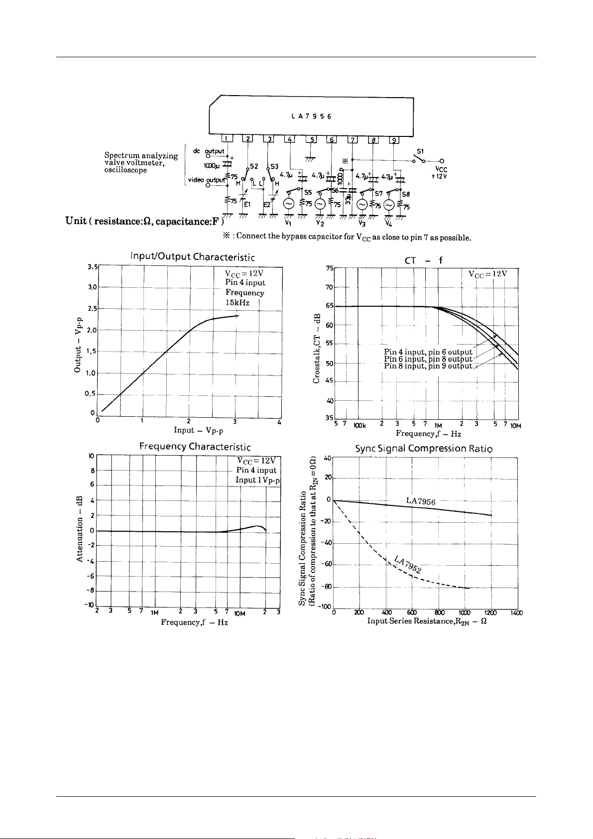 adjustments by connecting a high resistance (several hundred kΩ) across input pin and GND (decreasing the resistance makes the sync signal compression larger).