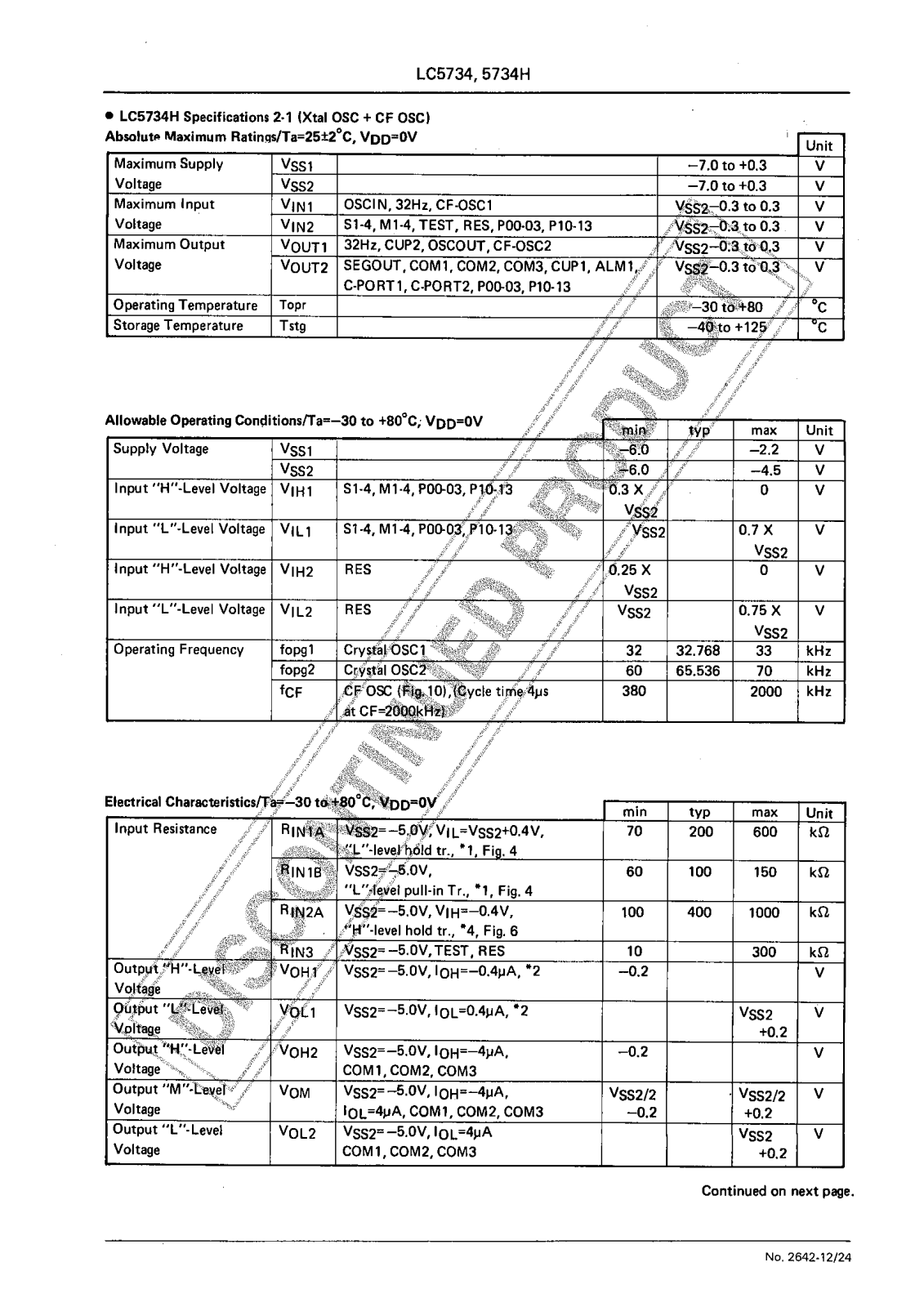 Sanyo LC5734 Specifications