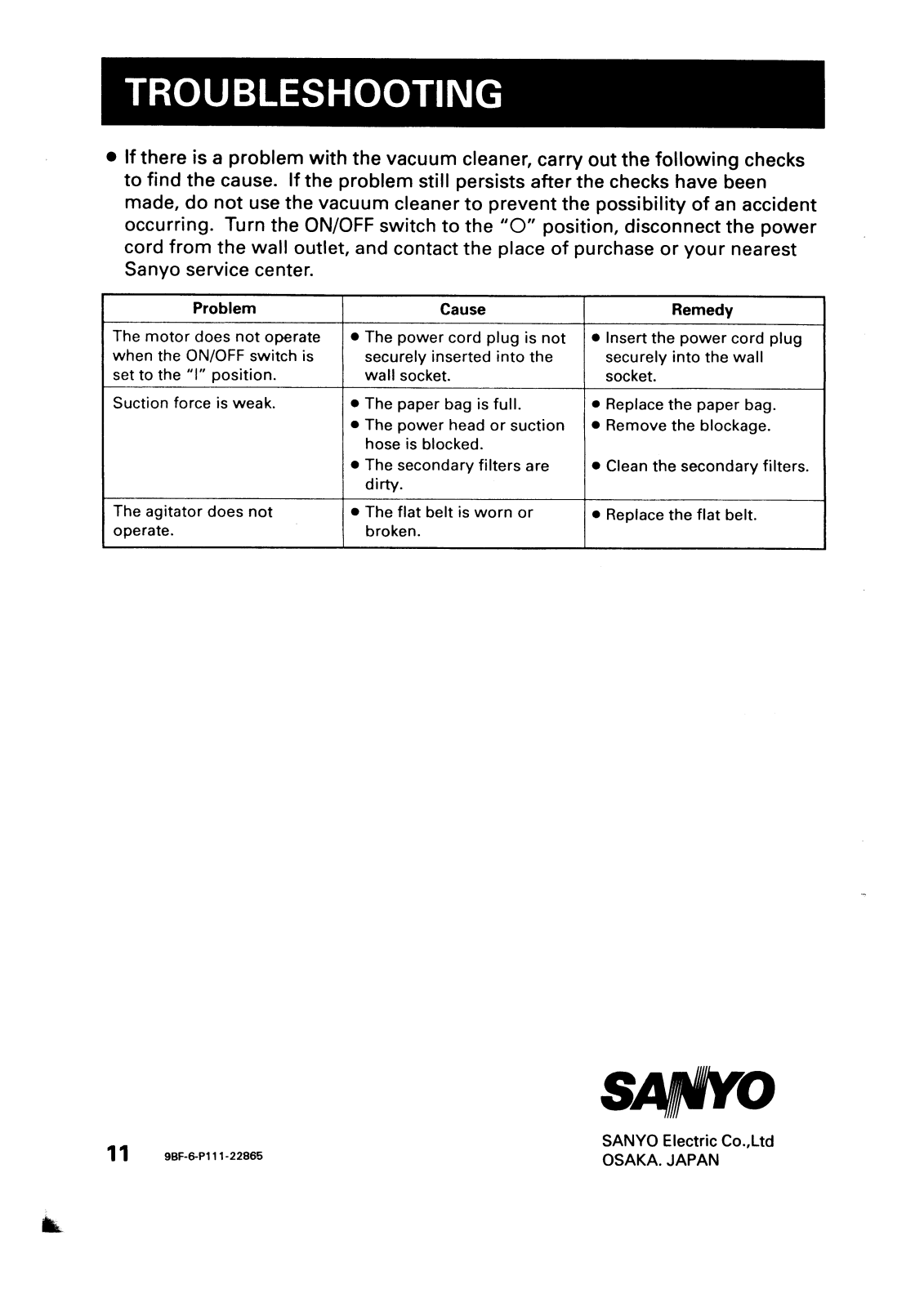 Sanyo Instruction Manual