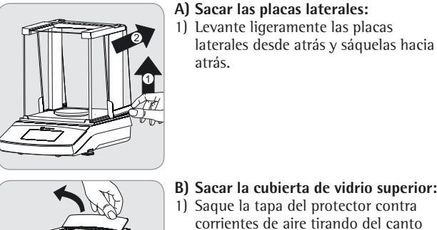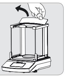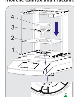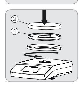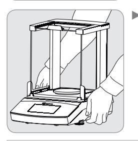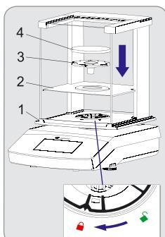Turn the draft shield lock to "locked Put the shield disk (2), centering ring* (3), pan support (4), and weighing pan (5) and draft ring* (6) on the