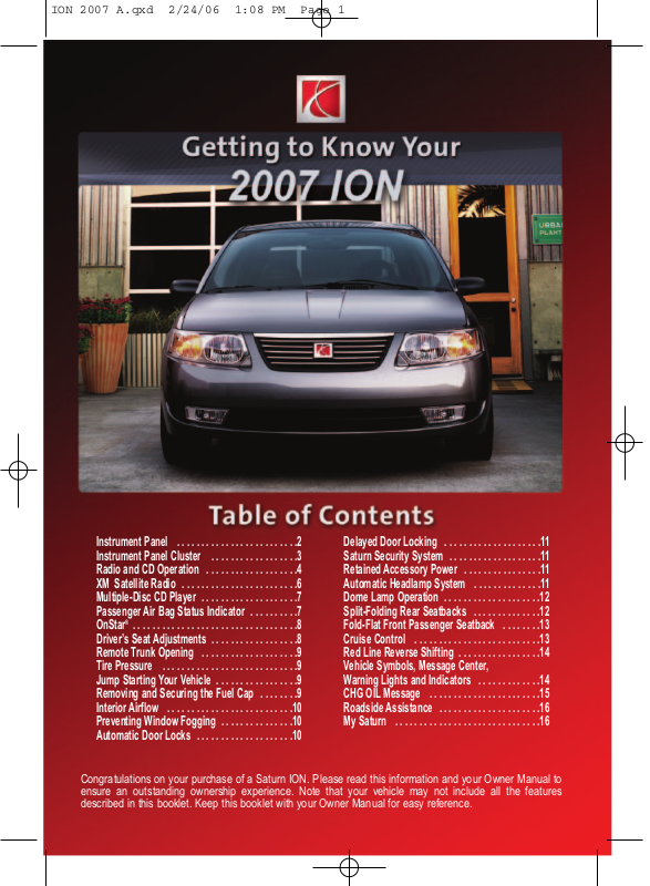Congratulations on your purchase of a Saturn ION. Please read this information and your Owner Manual to
