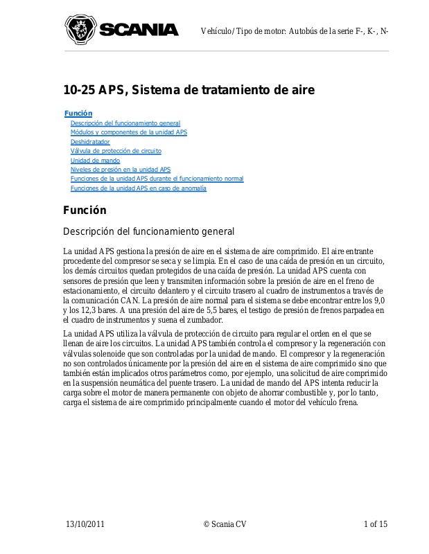 los demás circuitos quedan protegidos de una caída de presión. La unidad APS cuenta con