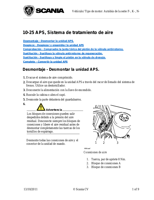 Descargue el aire que quede en la unidad APS a través del racor de llenado del sistema de