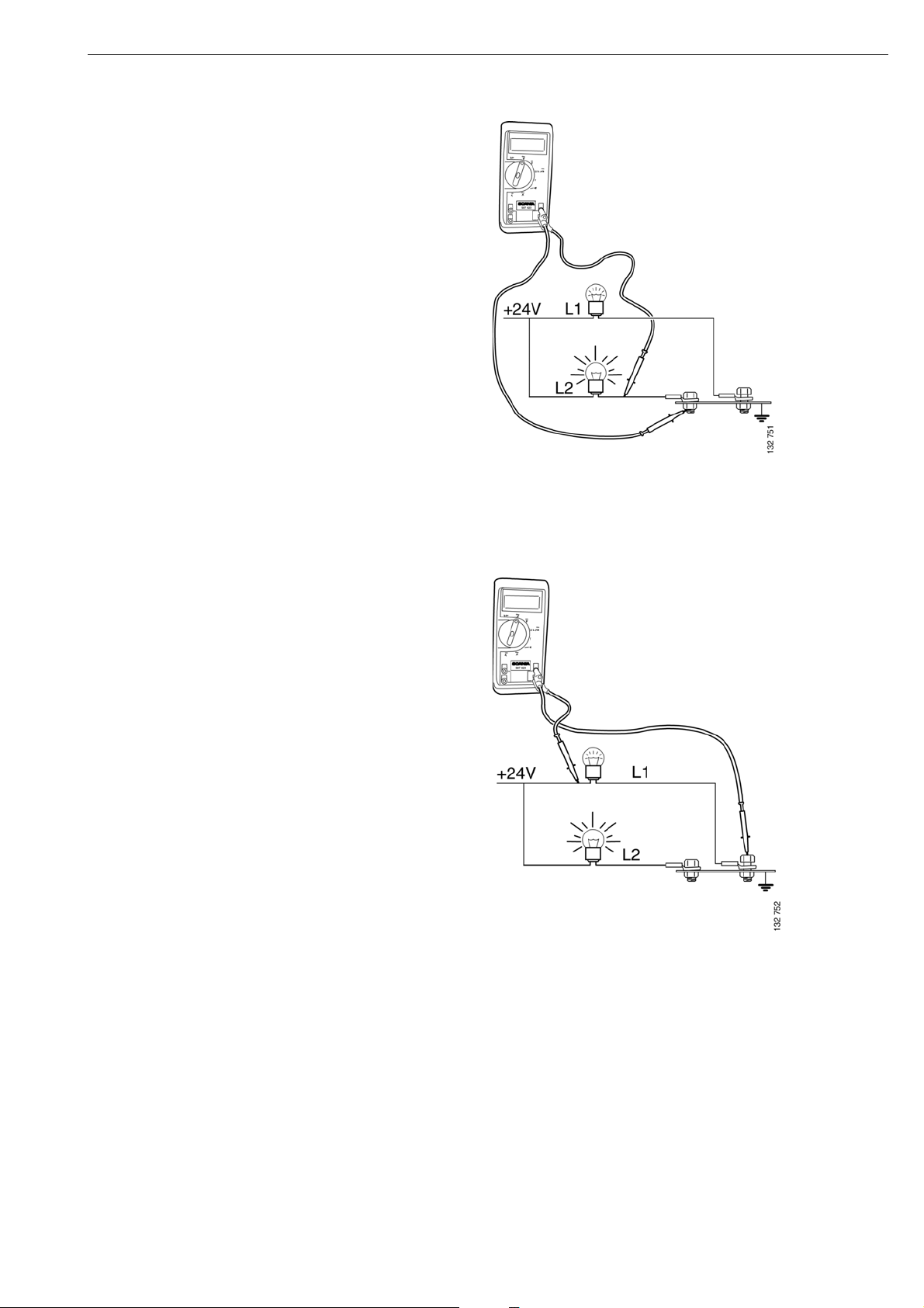 measurement gives, for example, 21V and measurement 1 gives 24V, the fault is in the earth cable.