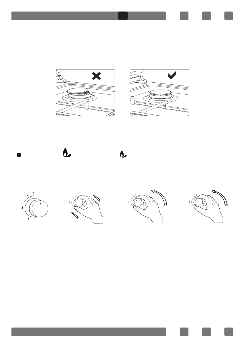 8. Using a gas hob will release humidity and combus­tion products in the room where it resides. Especially during when the appliance in use, ensure that the kitch­en is well ventilated and retain the natural ventilation holes or install a mechanical ventilation system. (Hood on top of the oven) Sustained usage of the appliance may require additional ventilation. For example open­ing a window or if available, increasing the ventilation level of a mechanical ventilation system.