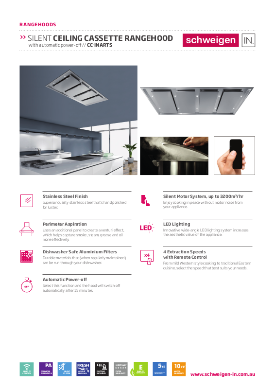 © Schweigen Home Appliances Pty Ltd. 2017. 8/3-4 Anzed Court, Mulgrave, Victoria 3170. Phone: 1300 881 693. Email: sales@schweigen-in.com.au. www.schweigen-in.com.au