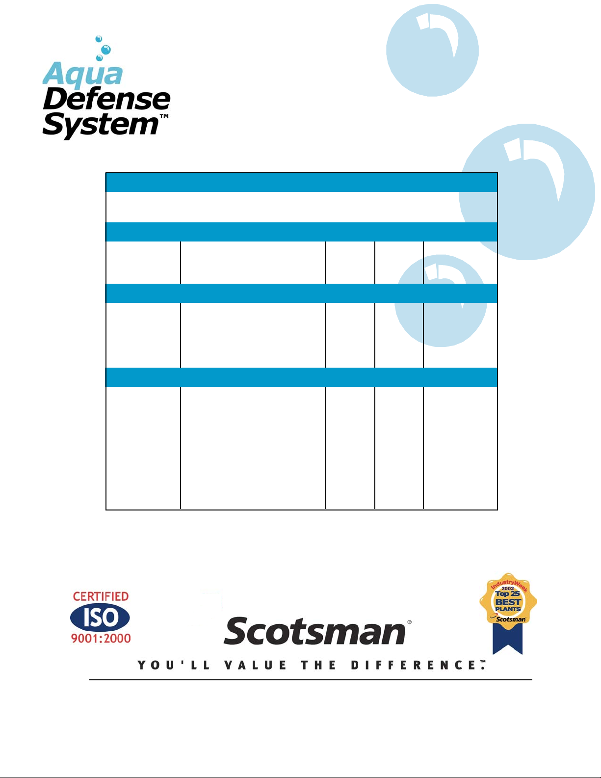BAD-2003 Scotsman reserves the right to make product improvements at any time. Specifications and design are subject to change without notice. Printed in U.S.A. .5M 9/03