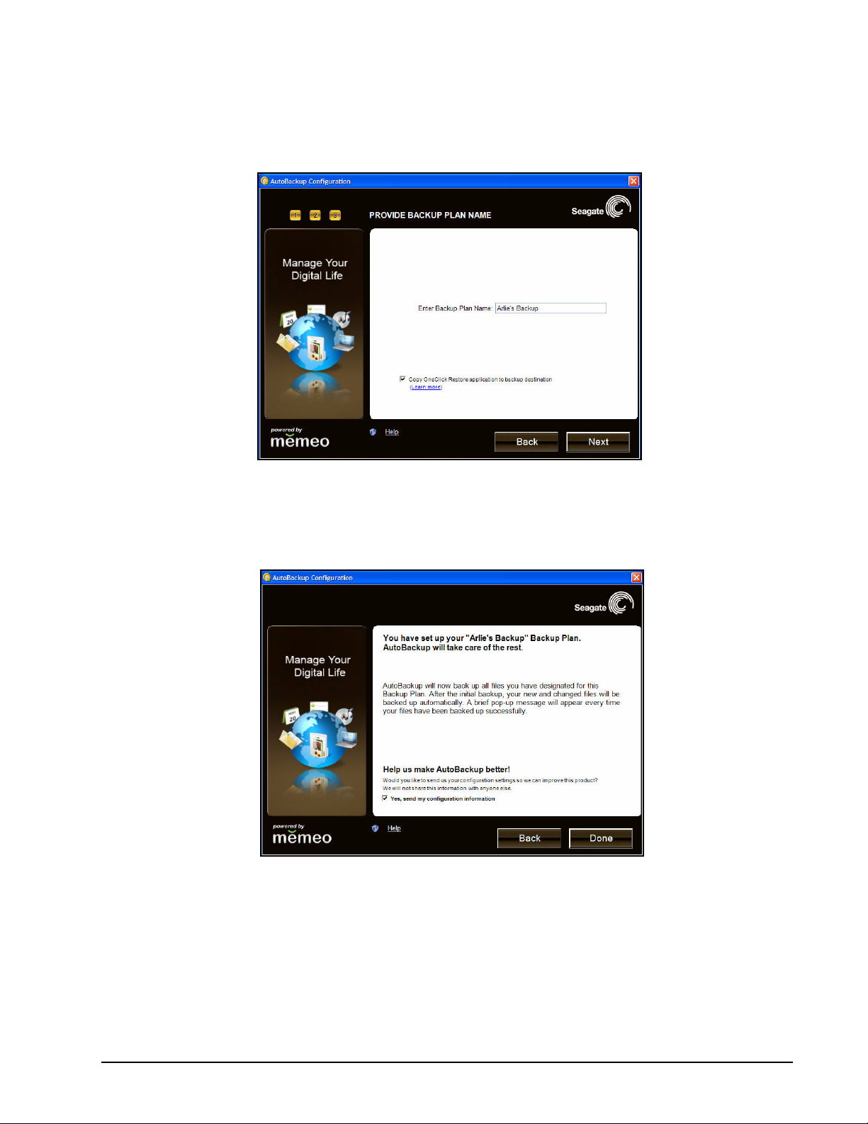 Откроется окно AutoBackup Setup Status (Состояние установки).
