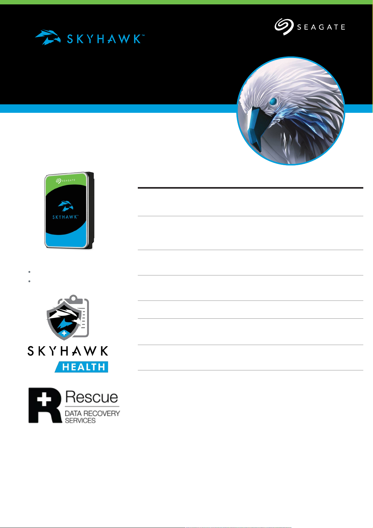 1 SkyHawk 视频分析硬盘专用于 180TB/年的不间断工作负荷。对于更高的事务型工作负载, 请参⻅ Seagate 企业级硬盘产品。