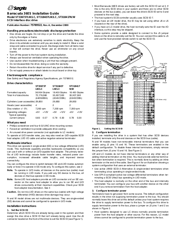 • Most Barracuda 36ES drives are factory set with the SCSI ID set at 0. If