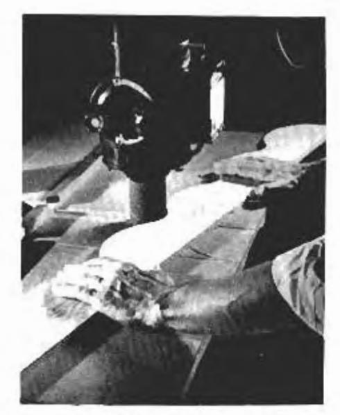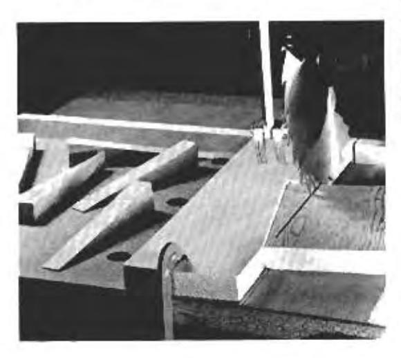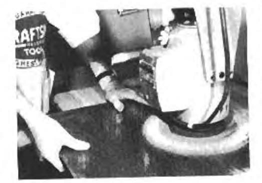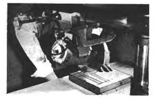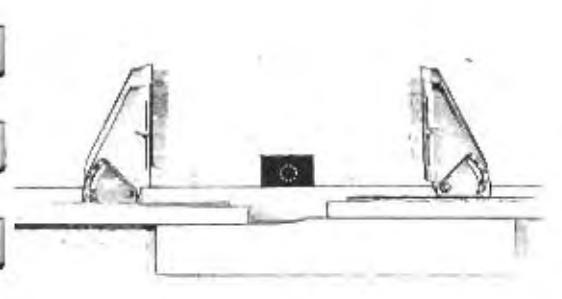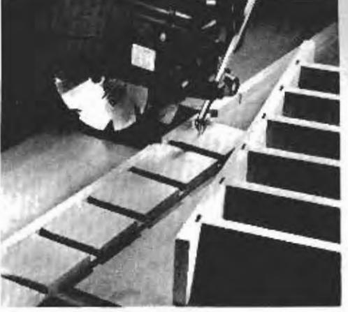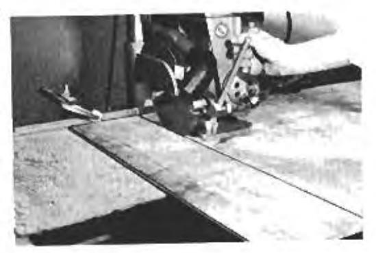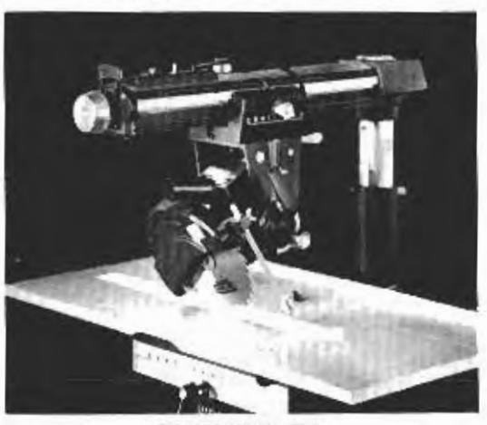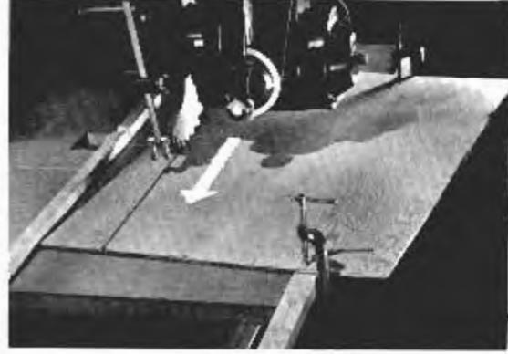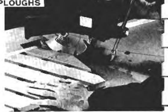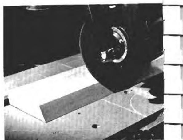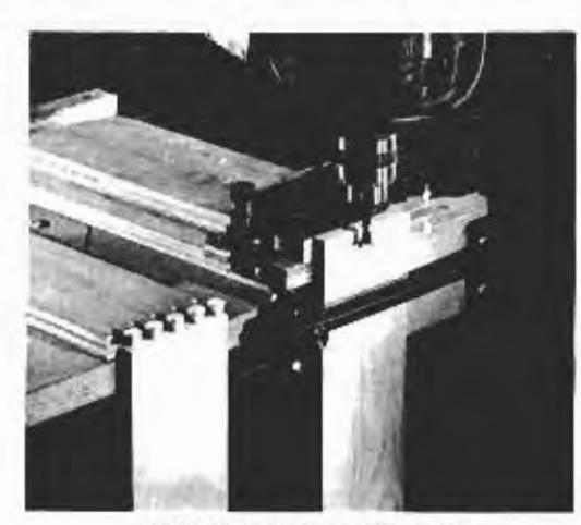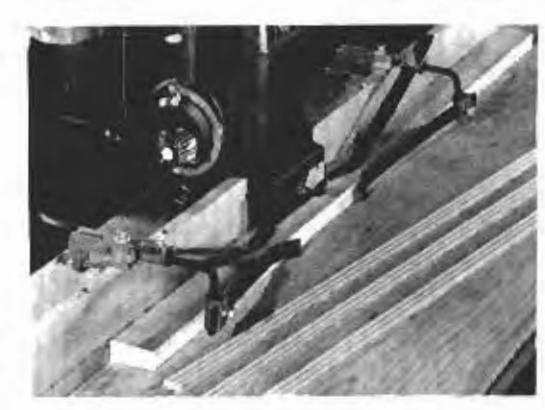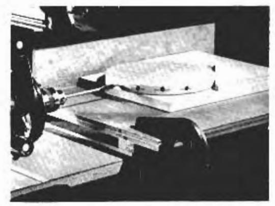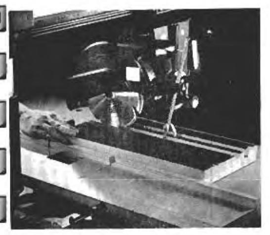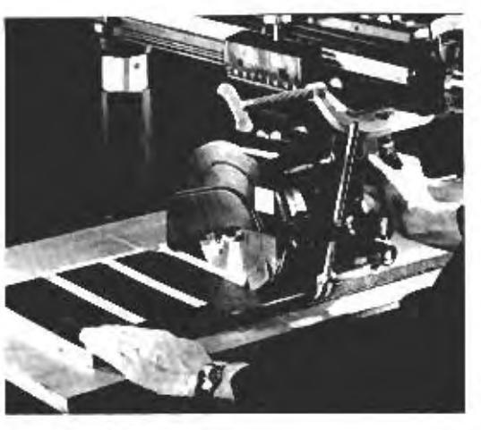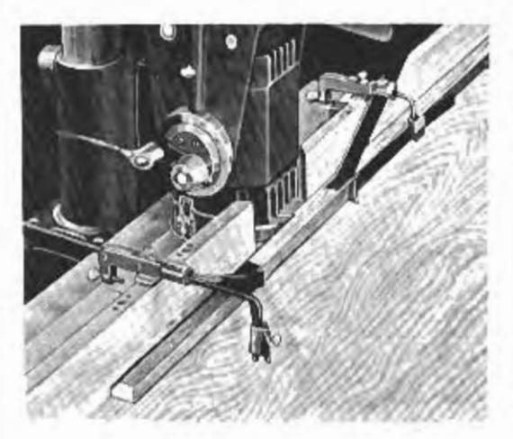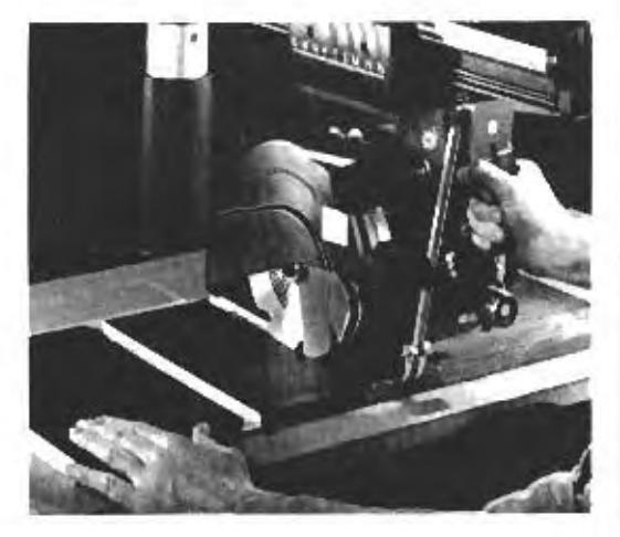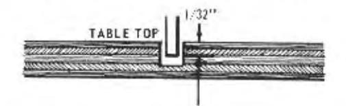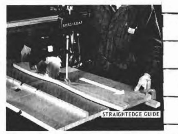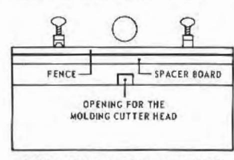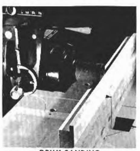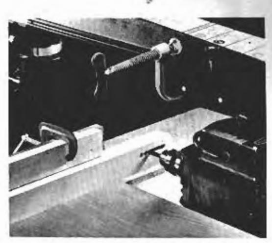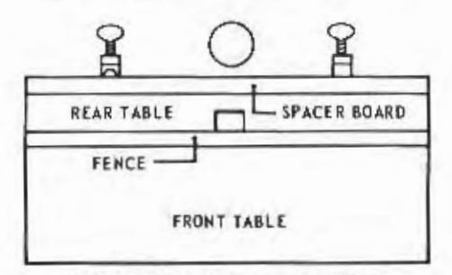 THE WORKTABLE consists of four pieces: a Front Table bolted to two steel channels — and a Fence, Spacer Board and Rear Board which can be arranged to suit the operation. The three interchangeable pieces rest on the channels and are secured by two Table Clamps which wedge them in behind the stationary front table.