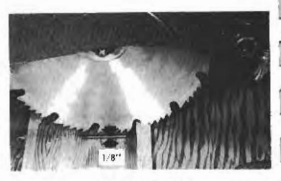 Precision-cut, adjustable hub. Dial widths from 1/4" to 13/16" without removing from saw. Calibrated in 1/16th in. Max. denth of cut. 2" Use to plough, dado, lap, groove, joint, and rabbet. to prough, dado, tap, groove, joint, and rabbet. Tool steel, 7" blade has 8 precision-dround carbide-tipped teeth. Bevel-ground on front face for free cutting on plywood and crosscutting on all solid woods. Use on all radial-arm saws.