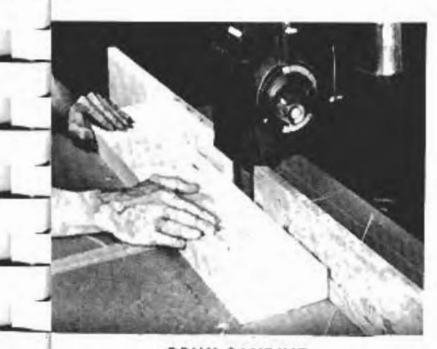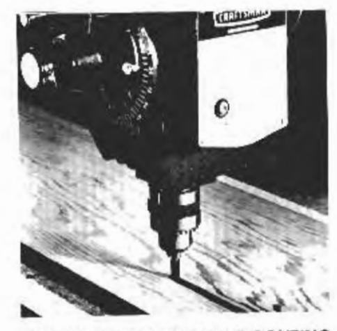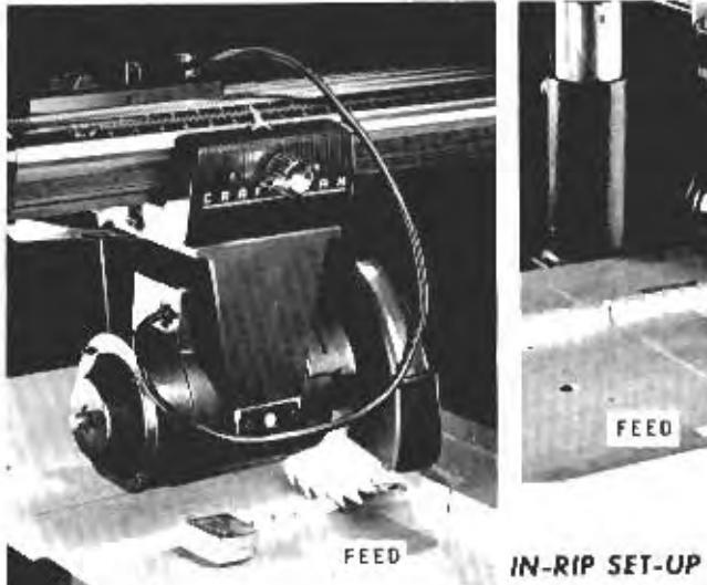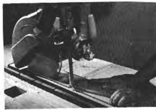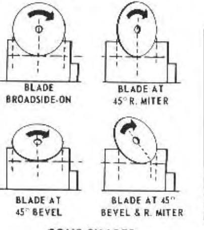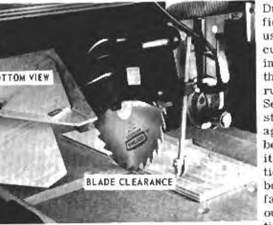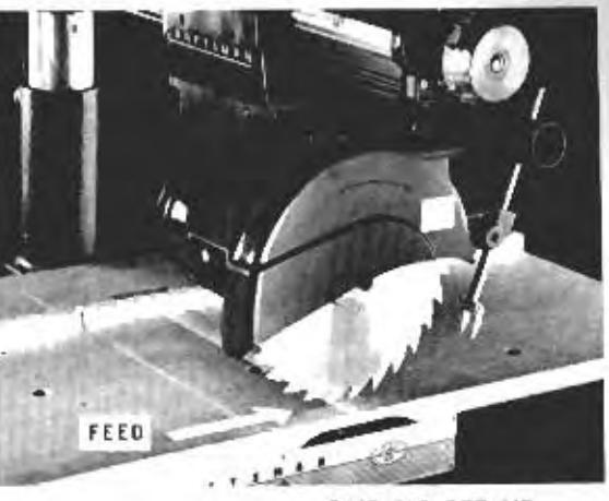Lightweight and portable, yet accurate and rugged — a precisionbuilt tool. Carriage glides smoothly, easily over permanently-lubricated ball bearings. Key-lock ON-OFF switch prevents unauthorized use. Has thermal-overload protector ... no belts or gears ... anti-kickback device ... sawdust discharge elbow ... 9" Kromedge combination blade. Accessory shaft end is 1/2 x 20 threaded. Ball-bearing motor for 110 V, 60 cycle, AC. Specs. same as for 10-in. saw, except those below.