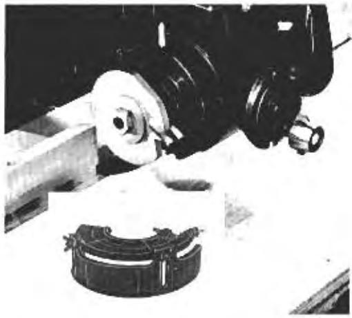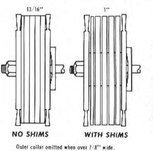 THE SAW SHAFT-END is 5/8-in. dia. and is fitted with two arbor collars and a hex nut. Circular blades and other circular accessories (grindstones, dado sets, etc.) — up to the max. rated sizes for the saw — can be operated at this end.