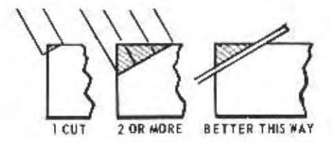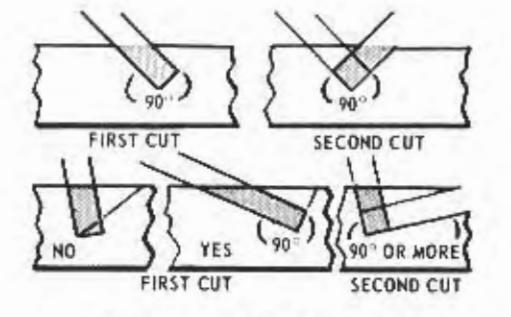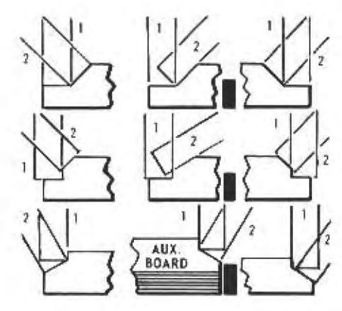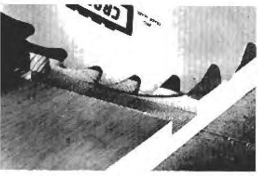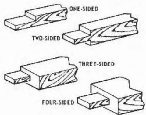 leave only a minute amount of overage for finish sanding (the amount depending upon the depth of the imperfections to be sanded off). If edge shaping on a joint is to be formed along an edge, "rough" size should be to exact enough dimensions so that it will not be neessary to further reduce the size during the following operation. In all cases, if the wood cannot be rough cut to leave the pieces perfectly "squared" and as smooth as a planing operation would leave them, then "rough" cut to an oversize which will permit subsequent planing and squaring.