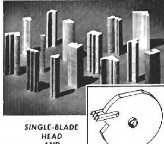 3-Cutter Head, available in 4-3/4" and 7" cutting dia. - either in sets with an assortment of most popular bits, or heads only and 18 separate cutter patterns.
