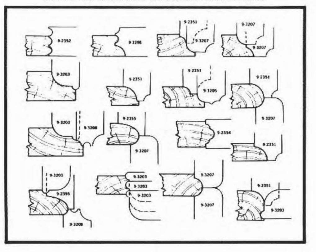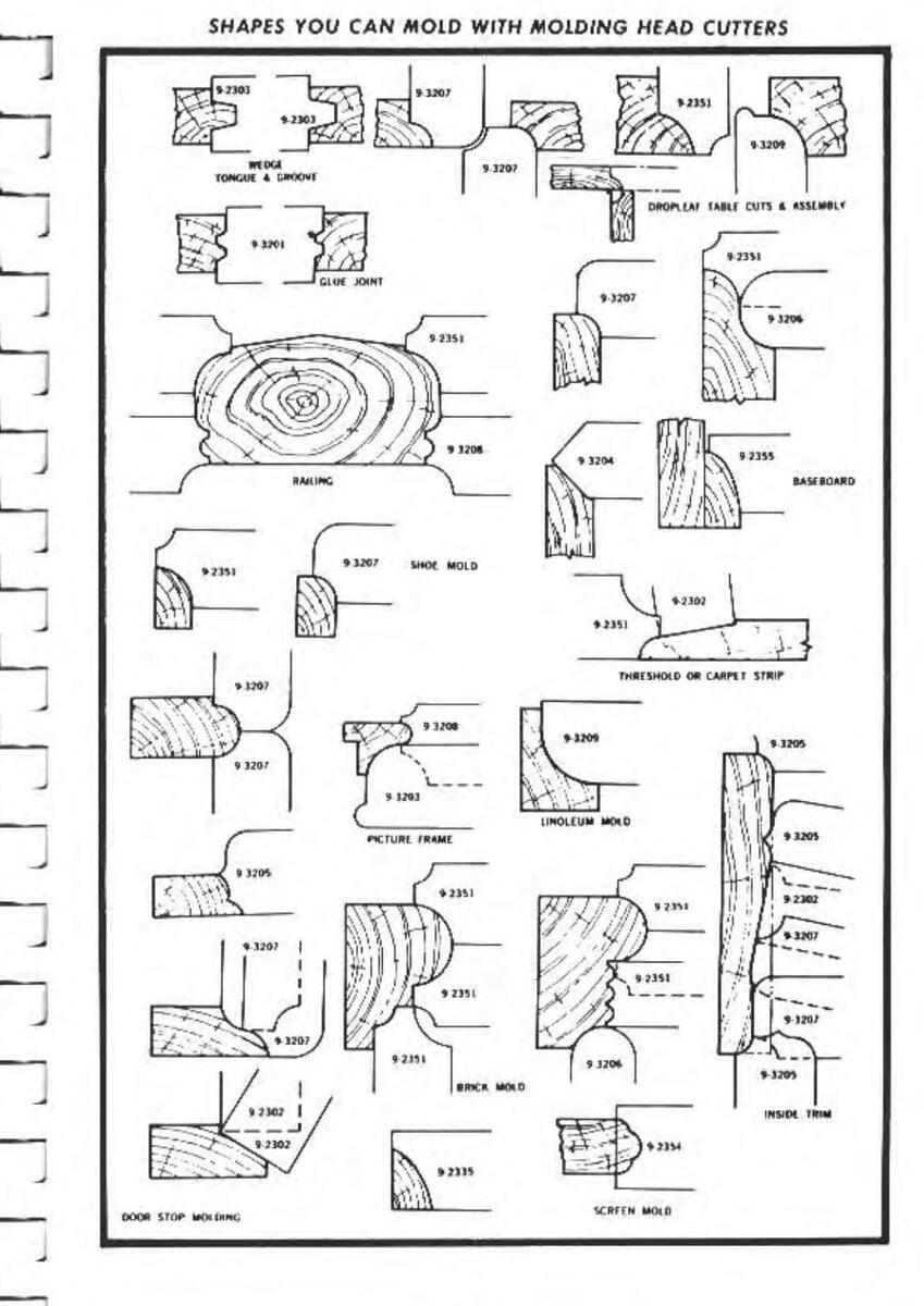 1-Cutter Head, with 5-5/8" cutting dia, is Set includes 18 different shape bits to mold various trim, edging and joint designs, with unlimited variations if bits are used in combinations.