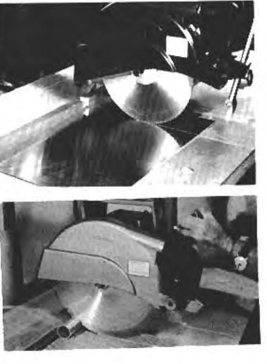 A massive, brawny, powerful saw, precision-built for top cutting accuracy. Top professional quality throughout. Has all the features of the 10-in. saw plus: no blade protrusion when out-ripping . smooth operation as carriage glides along steel tracks on permanentlylubricated ball bearings . easily removed and stored motor, yoke and carriage ... legs do not require a stand, or when mounted horizontally, act as carrying handles. All specifications same as for 10-in. saw except as listed here.