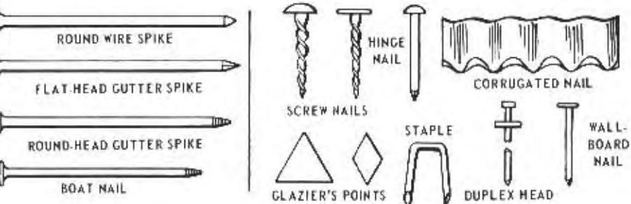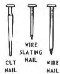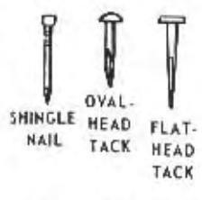 Brads, tacks and the "little" thin (wire) nails and other special types are generally sold "so-many in a box." These all have special uses but differ little in application from the common and finishing nails.