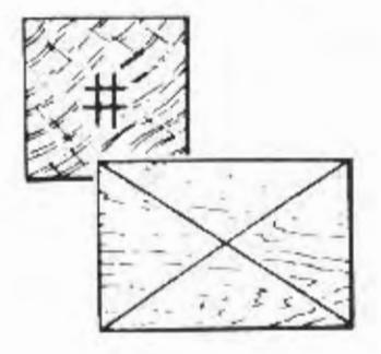 The exact center point of a perfectly square or rectangular piece can be quickly located by drawing two diagonal lines between opposite corners. These will cross at the center. If opposite sides are not exactly parallel, the approximate center can be found by using the combination square to draw lines equidistant from each of the four sides and fairly close together. You can now "spot" the center visually at the center of these four lines. In fact, this latter method will serve for centering five, six, etc. sided workpieces.