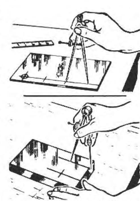 We cannot, in this brief space, give you any instructions for drafting plans. The accuracy and completeness of your plans will depend entirely upon how careful a workman you are - and upon how well you can visualize each detail of a finished project while it is still in the planning stage. Typical plans are shown in our project section, Chapter 12 However, the following ideas for converting plans into markings on the workpiece will help you with this phase of your work. The typical layout instruments used are shown here
